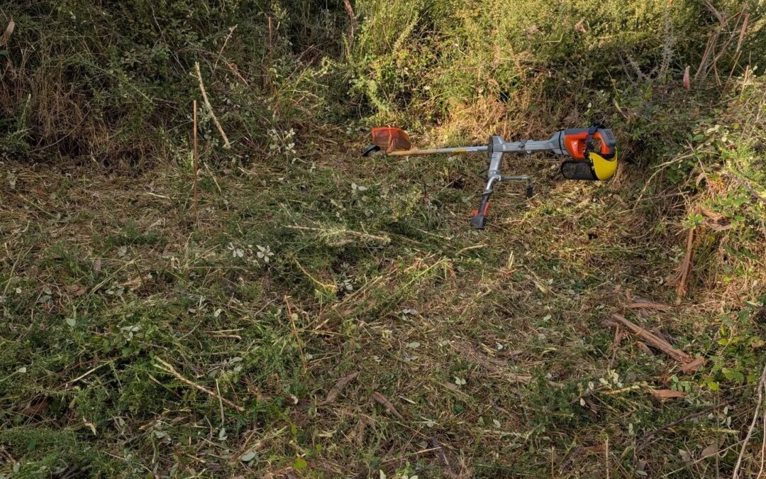 Cleaning the jungle on the west swale berm.